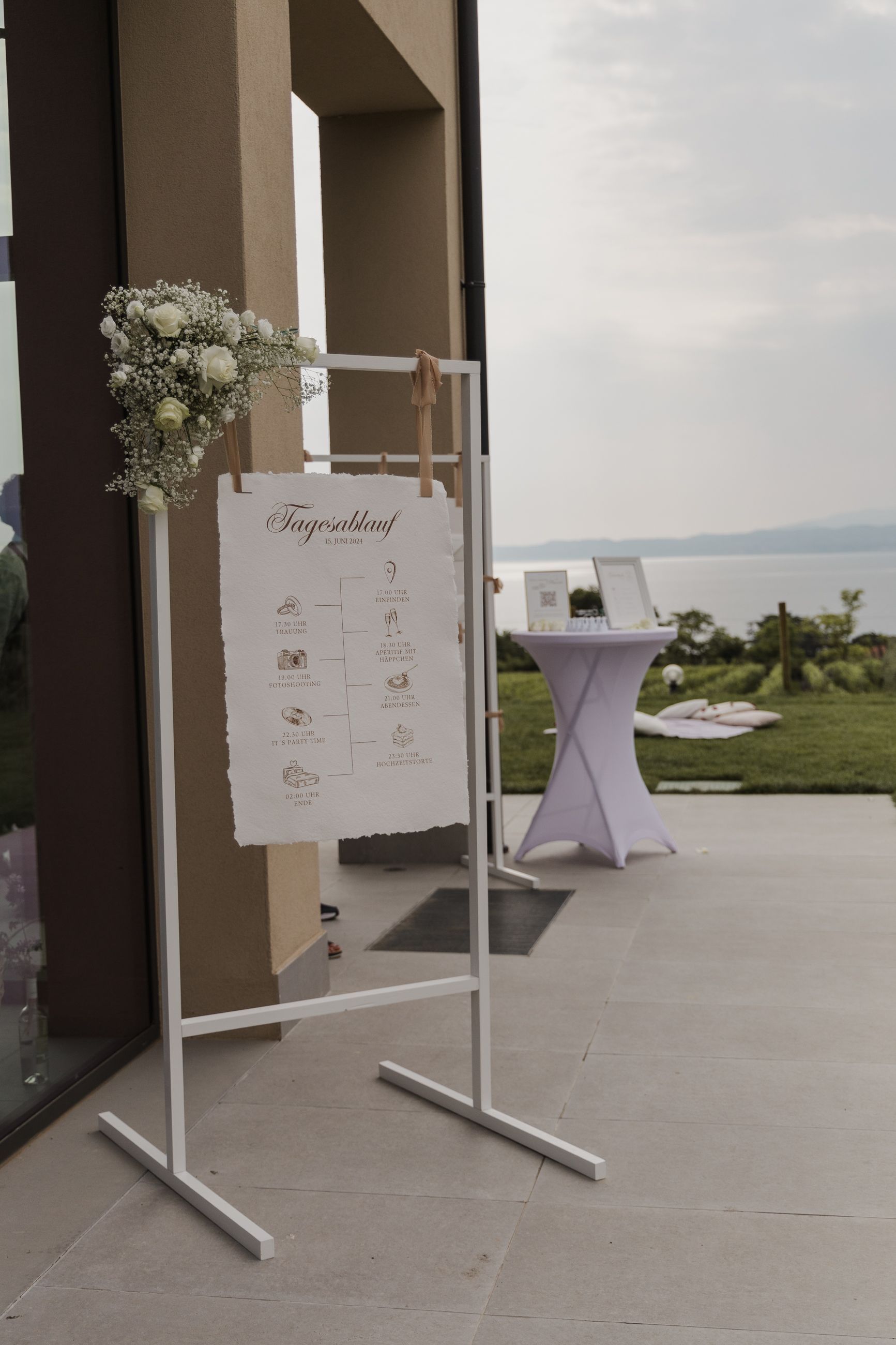 Schwarz, elegant und stylisch: Unser Sitzplan aus mattem Stahlrohr fügt sich perfekt in eure Location ein und zeigt euren Gäste gleich bei der Platzsuche, dass dies ein ganz besonderer Tag wird. Die schwarze Platte zum Befestigen der Tischübersichten ist inklusive.