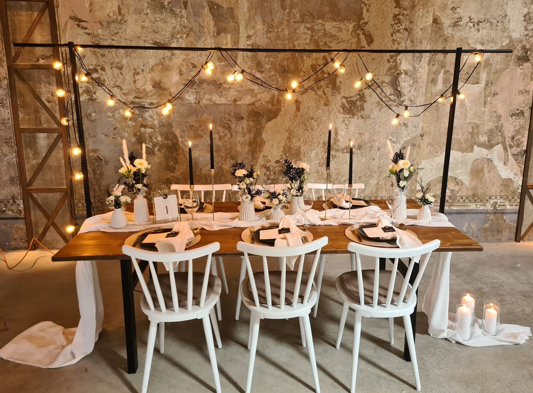 Die von uns designten und gebauten Tischgestelle vereinen alles: optisch absolut stylo, super stabil und flexibel anpassbar. Die Tischgestelle bieten euch eine geniale Aufhängungsmöglichkeit für Blumen, Lichterketten und sonstige Deko.